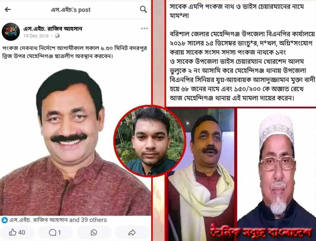 মেহেন্দিগঞ্জ উপজেলা পাতারহাট ঘোষ পট্টি বিএনপির পার্টি অফিসে ভাংচুর অগ্নি-সংযোগ করে, পংকজ দেবনাথ অনুসারী শাকিল বেপারী ও রাজিব সিকদার সহ আওয়ামী শতাধিক নেতাকর্মী।