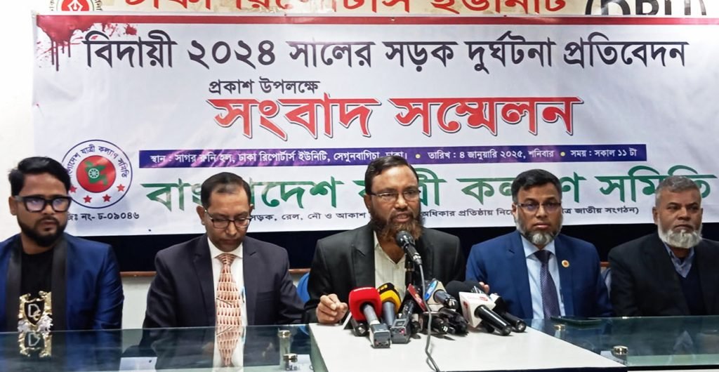 আজ শনিবার সকালে ঢাকা রিপোর্টার্স ইউনিটির সাগর-রুনি মিলনায়তনে বাংলাদেশ যাত্রী কল্যাণ সমিতি আয়োজিত ‘২০২৪ সালের সড়ক দুর্ঘটনার প্রতিবেদন প্রকাশ’ শীর্ষক সংবাদ সম্মেলনে এসব তথ্য জানান সমিতির মহাসচিব মোজাম্মেল হক চৌধুরী।