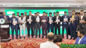 নবনির্বাচিত বাংলাদেশ প্রেসক্লাব ইউএই’র সম্পাদক ও সদস্যবৃন্দকে শপথ বাক্য পাঠ করান অনুষ্ঠানের বিশেষ অতিথি বাংলাদেশ সমিতি ইউএই’র সভাপতি প্রকৌশলী মোয়াজ্জেম হোসেন।