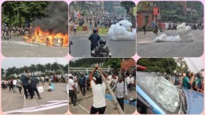 জাতীয় সংসদ ভবন এলাকায় গতকাল শুক্রবার ‘জুলাইযোদ্ধাদের’ সঙ্গে আইনশৃঙ্খলা রক্ষাকারী বাহিনীর দফায় দফায় সংঘর্ষ ও ধাওয়া-পাল্টা ধাওয়া হয়েছে। এ সময় মানিক মিয়া অ্যাভিনিউ, খামারবাড়ি ও আসাদগেট এলাকায় পুলিশের গাড়িসহ বেশ কিছু যানবাহন ভাঙচুর করা হয়। ‘জুলাইযোদ্ধাদের’ সঙ্গে আইনশৃঙ্খলা রক্ষাকারী বাহিনীর দফায় দফায় সংঘর্ষ ও ধাওয়া-পাল্টা ধাওয়া হয়েছে। এ সময় মানিক মিয়া অ্যাভিনিউ, খামারবাড়ি ও আসাদগেট এলাকায় পুলিশের গাড়িসহ বেশ কিছু যানবাহন ভাঙচুর করা হয়। পুলিশ ও র্যাবের দুটি অস্থায়ী নিয়ন্ত্রণ কক্ষে আগুন দেওয়া হয়েছে। পরিস্থিতি নিয়ন্ত্রণে পুলিশ লাঠিপেটা, টিয়ার গ্যাসের শেল ও সাউন্ড গ্রেনেড ছোড়ে। পুলিশকে লক্ষ্য করে বিক্ষোভকারীরা ইটপাটকেল ছোড়ে। গতকাল দুপুর দেড়টা থেকে আড়াইটা পর্যন্ত রণক্ষেত্র হয়ে ওঠে সংসদ ভবন এলাকা। উভয়পক্ষে অন্তত ৩০ জন আহত হয়েছেন। এদিকে পুলিশের হামলার প্রতিবাদসহ তিন দফা দাবিতে রোববার দুপুর ২টা থেকে ৫টা পর্যন্ত সব জেলায় মহাসড়কে অবরোধ কর্মসূচি পালনের ঘোষণা দিয়েছেন জুলাইযোদ্ধারা। সন্ধ্যায় সংসদ ভবন এলাকায় সংবাদ সম্মেলনে এ ঘোষণা দেন তারা।
