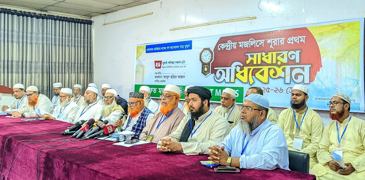 আজ রাজধানীর ইঞ্জিনিয়ার্স ইনস্টিটিউশন সেমিনার হলে দুপুর সাড়ে ১২টায় অনুষ্ঠিত উক্ত প্রেস ব্রিফিংয়ে সভাপতিত্ব করেন খেলাফত মজলিসের আমীর মাওলানা আবদুল বাছিত আজাদ। লিখিত বক্তব্য পেশ করেন মহাসচিব ড. আহমদ আবদুল কাদের। কেন্দ্রীয় মজলিসে শূরা অধিবেশনের বিরতিতে অনুষ্ঠিত উক্ত প্রেস ব্রিফিংয়ে উপস্থিত ছিলেন নায়েবে আমীর মাওলানা আহমদ আলী কাসেমী, অধ্যাপক সিরাজুল হক, মাওলানা সাইয়্যেদ ফেরদাউস বিন ইসহাক, মুফতি আবদুল হামিদ, যুগ্ম-মহাসচিব এডভোকেট জাহাঙ্গীর হোসাইন, মুহাম্মদ মুনতাসির আলী, এবিএম সিরাজুল মামুন, ড. মোস্তাফিজুর রহমান ফয়সল, অধ্যাপক মো: আবদুল জলিল, ডাঃ এ এ তাওসিফ, সাংগঠনিক সম্পাদক এডভোকেট মিজানুর রহমান, অধ্যাপক কাজী মিনহাজুল আলম, অধ্যাপক ড. আহমদ আসলাম, মাওলানা সামছুজ্জামান চৌধুরী, মাস্টার আবদুল মজিদ, অধ্যাপক মাওলানা এ এস এম খুরশীদ আলম, মাওলানা শেখ সালাহউদ্দিন, অধ্যাপক এ কে এম মাহবুব আলম, বায়তুলমাল সম্পাদক আলহাজ্ব আবু সালেহীন, সমাজকল্যাণ ও শিল্প বিষয়ক সম্পাদক আমিনুর রহমান ফিরোজ, প্রশিক্ষণ সম্পাদক মো: জহিরুল ইসলাম, সাংস্কৃতিক সম্পাদক মাওলানা রুহুল আমিন সাদী, প্রচার ও তথ্য সম্পাদক প্রকৌশলী আবদুল হাফিজ খসরু, শ্রম বিষয়ক সম্পাদক প্রভাষক আবদুল করিম, স্বাস্থ্য বিষয়ক সম্পাদক ডা. রিফাত হোসেন মালিক, দাওয়াহ বিষয়ক সম্পাদক মুফতি শিহাবুদ্দীন, আইন বিষয়ক সম্পাদক এডভোকেট হাফেজ মাওলানা শায়খুল ইসলাম, উলামা বিষয়ক সম্পাদক মুফতি আলী হাসান উসামা, যুব বিষয়ক সম্পাদক তাওহীদুল ইসলাম তুহিন, কৃষি বিষয়ক সম্পাদক কৃষিবিদ ড. মাহবুবুর রহমান, বাংলাদেশ ইসলামী ছাত্র মজলিস কেন্দ্রীয় সভাপতি মুহাম্মদ রায়হান আলী, কেন্দ্রীয় নির্বাহী পষিদ সদস্য ও কেন্দ্রীয় মজলিসে শূরা সদস্য বৃন্দ।