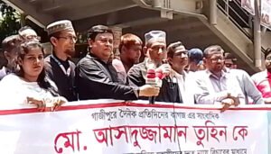 বিক্ষোভ সমাবেশ বক্তারা গাজীপুরের আইন শৃঙ্খলা চরম অবনতি ও প্রশাসনের ব্যর্থতার সুস্পষ্ট বহু কারন উল্লেখ করেন। এবং সাংবাদিক আসাদুজ্জামান তুহিন হত্যা ও একদিন আগে আরেক সাংবাদিক আনোয়ারের উপর বর্বরোচিত হামলাকারীদের দৃষ্টান্তমূলক শাস্তি দাবি করেন।