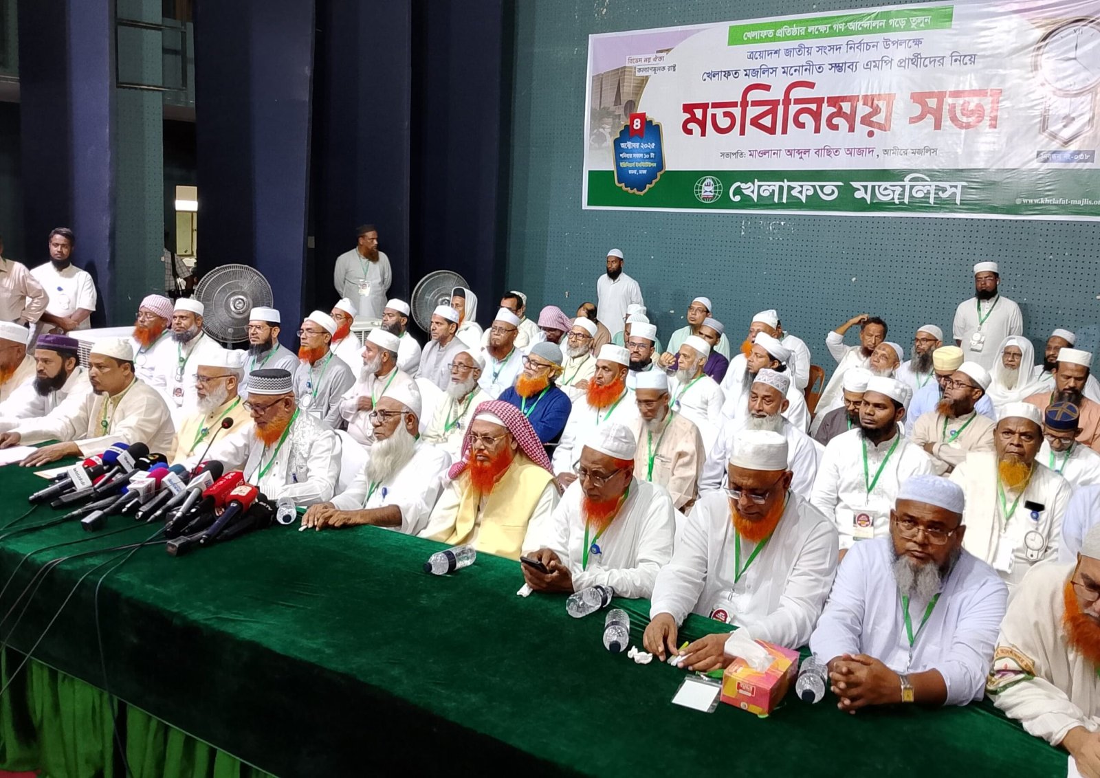এর আগে সকাল ১০টায় উক্ত হলে খেলাফত মজলিস মনোনীত দেওয়াল ঘড়ি প্রতিকের সম্ভাব্য সংসদ সদস্য প্রার্থীদের নিয়ে আয়োজিত মতবিনিময় সভার সভাপতিত্ব করেন আমীরে মজলিস মাওলানা আব্দুল বাছিত আজাদ। উপস্থিত ছিলেন নায়েবে আমীর মাওলানা সাখাওয়াত হোসাইন, মাওলানা আহমদ আলী কাসেমী, অধ্যাপক সিরাজুল হক, মাওলানা আবদুল হামিদ, যুগ্ম মহাসচিব এডভোকেট জাহাঙ্গীর হোসাইন, মুহাম্মদ মুনতাসির আলী, এবিএম সিরাজুল মামুন, ড. মোস্তাফিজুর রহমান ফয়সল, অধ্যাপক আবদুল জলিল, ডা. এ এ তাওসিফ, কেন্দ্রীয় সাংগঠনিক সম্পাদক এডভোকেট মিজানুর রহমান, অধ্যাপক কাজী মিনহাজুল আলম, মাওলানা শামসুজ্জামান চৌধুরী, অধ্যাপক মাওলানা এ এস এম খুরশিদ আলম, মাওলানা শেখ মুহাম্মদ সালাহউদ্দিন, অধ্যাপক এ কে এম মাহবুব আলম, অর্থ সম্পাদক আলহাজ্ব আবু সালেহীন, কেন্দ্রীয় শিল্প ও বাণিজ্য বিষয়ক সম্পাদক আমিনুর রহমান ফিরোজ প্রমুখ।