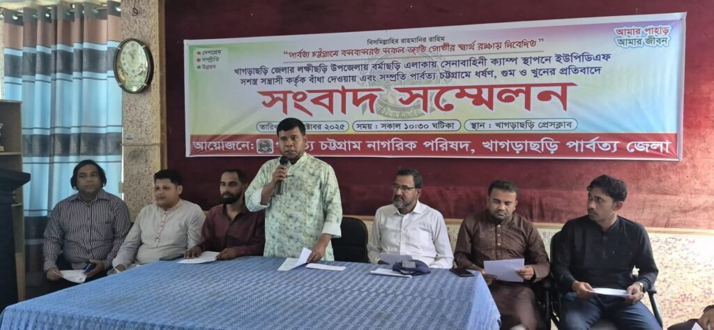 মঙ্গলবার (২৮ অক্টোবর) সকালে খাগড়াছড়ি প্রেসক্লাবের সম্মেলন কক্ষে পার্বত্য চট্টগ্রাম নাগরিক পরিষদ খাগড়াছড়ি জেলা শাখার আয়োজনে এ সংবাদ সম্মেলন অনুষ্ঠিত হয়।