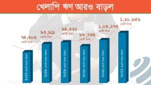 কেন্দ্রীয় ব্যাংকের সর্বশেষ তথ্য বলছে, ২০২২ সালের ডিসেম্বর শেষে ব্যাংকিং খাতের মোট ঋণ স্থিতি দাঁড়িয়েছে ১৪ লাখ ৭৭ হাজার ৭৮৮ কোটি ৭৬ লাখ টাকা। এর মধ্যে খেলাপিতে পরিণত হয়েছে এক লাখ ২০ হাজার ৬৫৬ কোটি টাকা। যা মোট ঋণের ৮ দশমিক ১৬ শতাংশ। অর্থাৎ উচ্চ খেলাপির ঝুঁকিতে রয়েছে দেশের ব্যাংক খাত। কারণ আন্তর্জাতিক মানদণ্ড অনুযায়ী খেলাপি ঋণের হার সর্বোচ্চ ৩ শতাংশ সহনীয় বলে ধরা হয়।