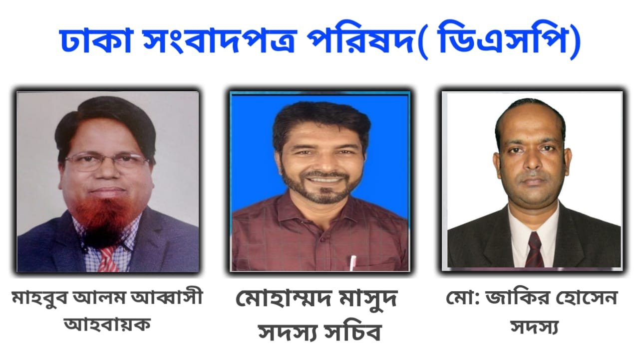 রাজধানী ঢাকা থেকে প্রকাশিত সংবাদ পত্র মালিকদের নিয়ে 'ঢাকা সংবাদ পত্র পরিষদ' ( ডিএসপি) নামে একটি শক্তিশালী সংগঠন গঠনের লক্ষে গতকাল রাজধানীর একটি রেস্টুরেন্টে আলোচনা সভা অনুষ্ঠিত হয়। উক্ত সভায় মাহবুব আলম আব্বাসীর সভাপতিত্তে আলোচনায় অংশগ্রহণ করেন অনেক পত্রিকার সম্পাদক ও প্রকাশক, আলোচনা সভায় বক্তারা বলেন সংবাদপত্রের এখন বেহাল অবস্থা, ছাপা ও কাগজের দাম বৃদ্ধি, বিজ্ঞাপন সংকোচিত, সরকারী বিজ্ঞাপনের বিল আটকে আছে বছরের পর বছর সেই সমস্যা থেকে উত্তরণে আমাদেরকে একতাবদ্ধ হয়ে কাজ করতে হবে আর সে লক্ষেই আজ আমরা একতাবদ্ধ হতে চাই। সভাশেষে ঢাকা সংবাদপত্র পরিষদ (ডিএসপি)এর ৩ সদস্য বিশিষ্ট একটি আহবায়ক কমিটি ঘোষনা করা হয় সর্বসম্মতিক্রমে উক্ত আহবায়ক কমিটিতে মাহবুব আলম আব্বাসী আহবায়ক সম্পাদক- দৈনিক গণতদন্ত, সদস্য-সচিব মোহাম্মদ মাসুদ, সম্পাদক- দৈনিক সবুজ বাংলাদেশ, সদস্য মো: জাকির হোসেন সম্পাদক - দৈনিক খবর বাংলাদেশ।