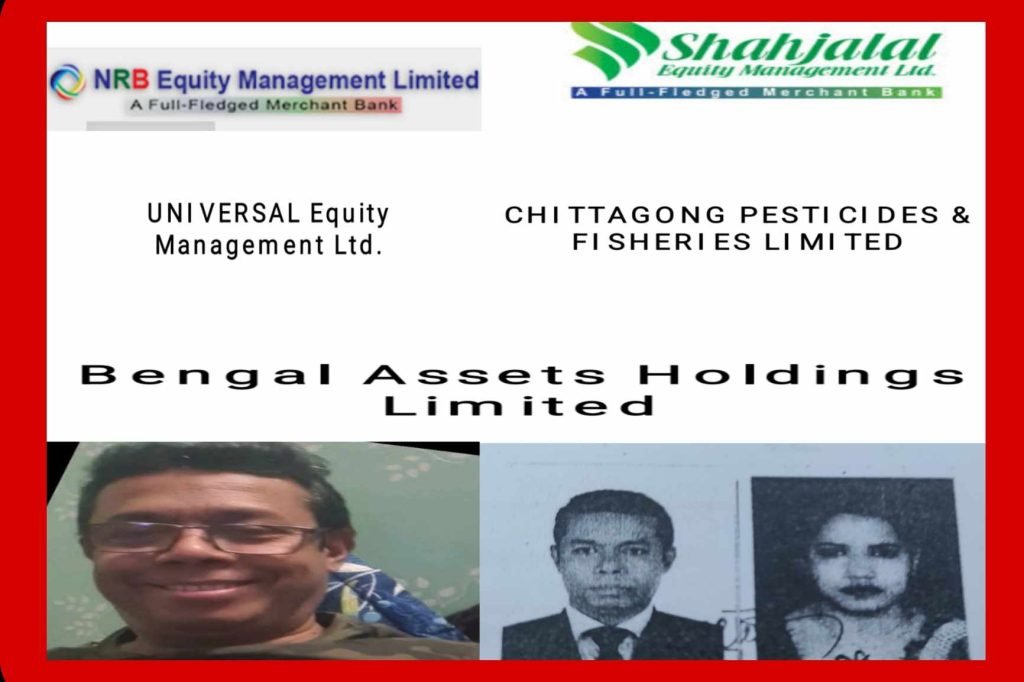 ১/-কাট্টালি টেক্সটাইল লিমিটেড,২/-ডমিনেজ স্টিল বিল্ডিং সিস্টেমস লিমিটেড,৩/-একমি পেস্টিসাইডস লিমিটেড ও ৪/-এগ্রো অর্গানিকা পিএলসি (কিউআইও)উক্ত ৪ টি কোম্পানির ইস্যু ব্যবস্থাপনার দায়িত্বে ছিল আর সেই সুযোগে কোম্পানিগুলো থেকে অবৈধভাবে হাতিয়ে নিয়েছে বিপুল পরিমাণে প্লেসমেন্ট শেয়ার।