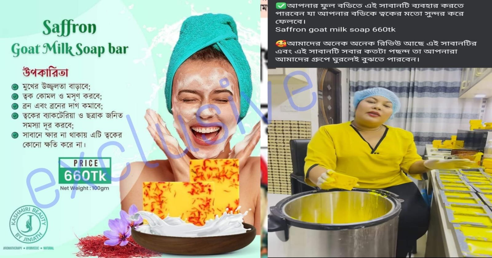 সাফরন গ্রর্ট মিল্ক সোপবার নামে একটি সাবান পণ্য উৎপাদন করে সামাজিক যোগাযোগের মাধ্যমে বাজারজাত ও বিজ্ঞাপন প্রচার করে লাখ লাখ টাকার সাবান বিক্রি করা হচ্ছে। বিএসটিআই পরিবেশ অধিদপ্তর সহ সংশ্লিষ্ট কোন কর্তৃপক্ষের অনুমোদন ছাড়াই বাসায় বসে দিনের পর দিন কেমিস্ট, ল্যাব, ছাড়াই রূপচর্চাকারী সাবান তৈরি হচ্ছে। বিএসটিআই ও পরিবেশে অধিদপ্তরের সনদ ছাড়া ত্বক ফর সরকারি ক্ষতিকারক কেমিক্যাল ব্যবহার করে এই সাবান তৈরী করা হচ্ছে। যা ত্বকের জন্য খুবই স্পর্শকাতর।
