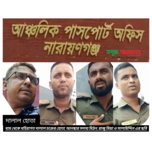 নারায়ণগঞ্জ আঞ্চলিক পাসপোর্ট অফিসে ঘুরছে ছকে বাঁধা ঘুষ দুর্নীতির চরকি। ঘুষ না দিলেই পাসপোর্টের আবেদন হয়ে যায় ত্রুটিপূর্ণ। দালাল চক্রের মাধ্যমে আনসার সদস্য ধরে ঘুষ দিলে ত্রুটি থাকলেও বিশেষ সংকেতে গ্রহণ করা হয় আবেদন। এখানে আনসার সদস্য ও দালালদের দৌরাত্ম্য এতই বেপরোয়া যে, তারা নিজেরাই দিচ্ছেন পুলিশ ভেরিফিকেশনের নিশ্চয়তা।