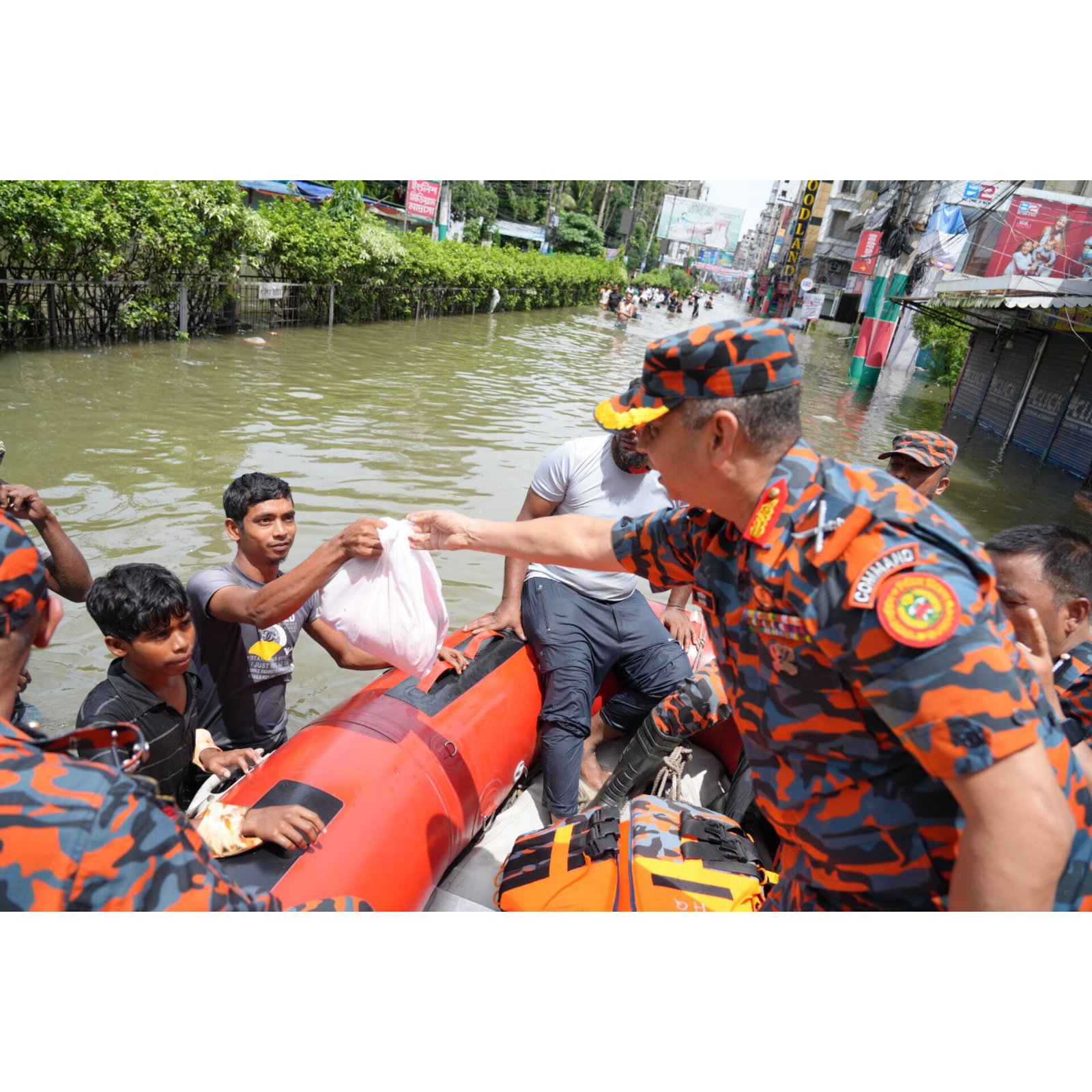 ফায়ার সার্ভিস ও সিভিল ডিফেন্সের পরিচালক (অপারেশন ও মেইনটেইনেন্স) লেফটেন্যান্ট কর্নেল মোহাম্মদ তাজুল ইসলাম চৌধুরীর নেতৃত্বে ঢাকা, চট্টগ্রাম, খুলনা, বরিশাল থেকে ফায়ার সার্ভিসের ৯টি টিম বন্যাদুর্গত এলাকায় উদ্ধারকাজ ও ত্রাণসামগ্রী প্রদানের কাজ করছে।
