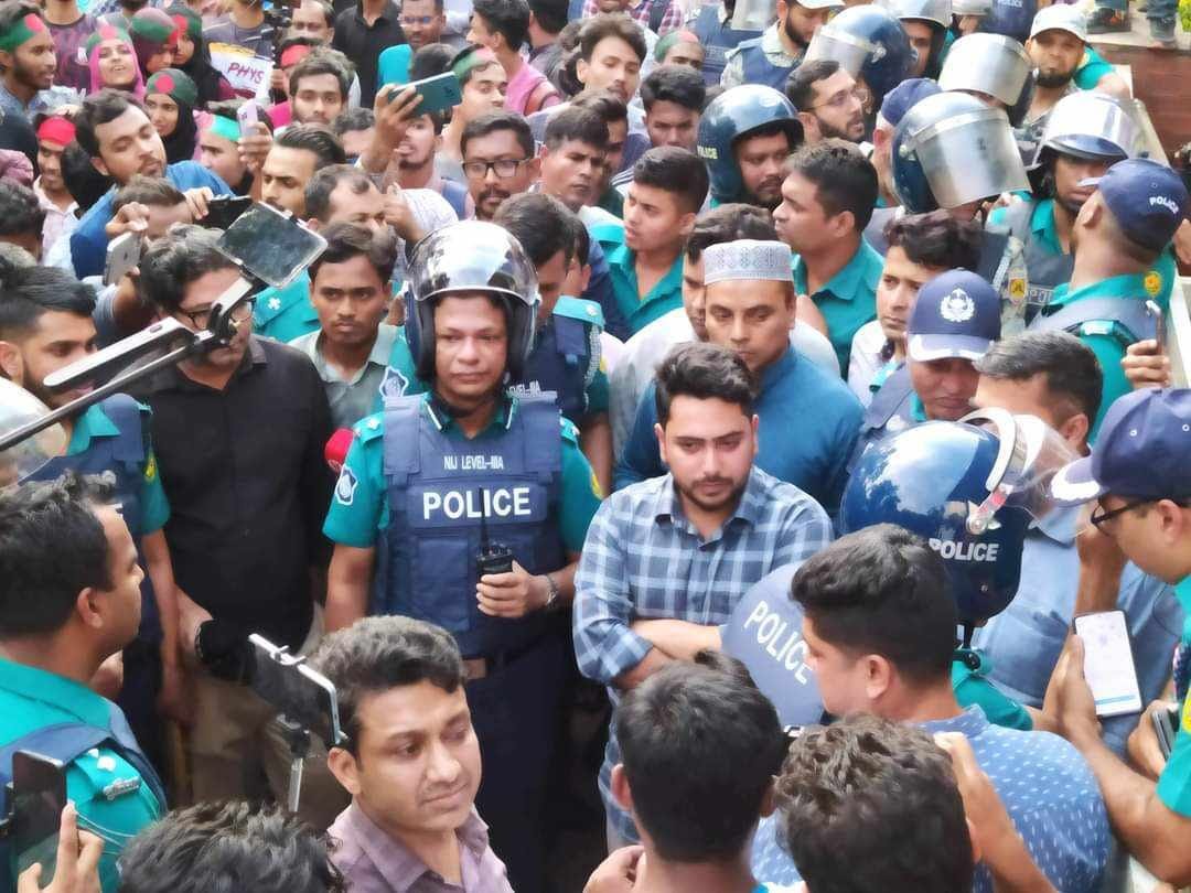 সোমবার বেলা সাড়ে ১১টার দিকে জগন্নাথ বিশ্ববিদ্যালয়ের প্রায় ২ হাজারের বেশি শিক্ষার্থী গণপদযাত্রা নিয়ে সচিবালয়ের অদূরে শিক্ষা ভবনের সামনে অবস্থান নিয়ে এ কর্মসূচি পালন করেন।