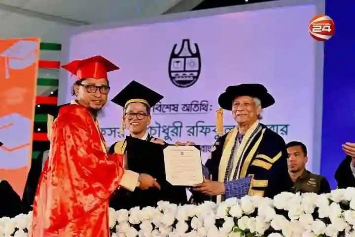 স্টাফ রিপোর্টার: চট্টগ্রাম বিশ্ববিদ্যালয় সমাবর্তনে প্রধান উপদেষ্টার হাত থেকে সম্মাননা পেলেন মির্জাখীল দরবারের সাজ্জাদানীনসহ চারজন। এ এক বিরল সম্মান ও প্রাপ্তি আমাদের জন্য। চট্টগ্রাম বিশ্ববিদ্যালয়ের ৫ম সমাবর্তন অনুষ্ঠান বুধবার সম্পন্ন…