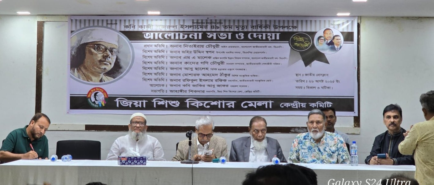 জাতীয় কবি নজরুলের মৃত্যুবার্ষিকীতে জিয়া শিশু কিশোর মেলার আলোচনা সভা ও দোয়া মাহফিল